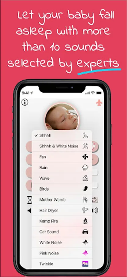 - More than 10 baby sleep sounds including pink & white noise, womb.