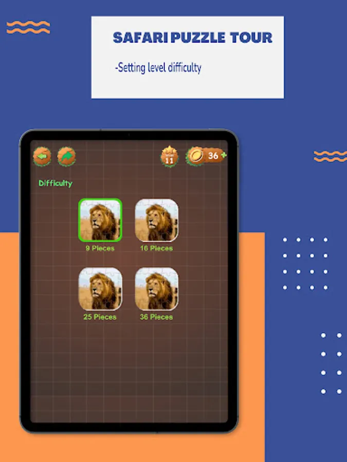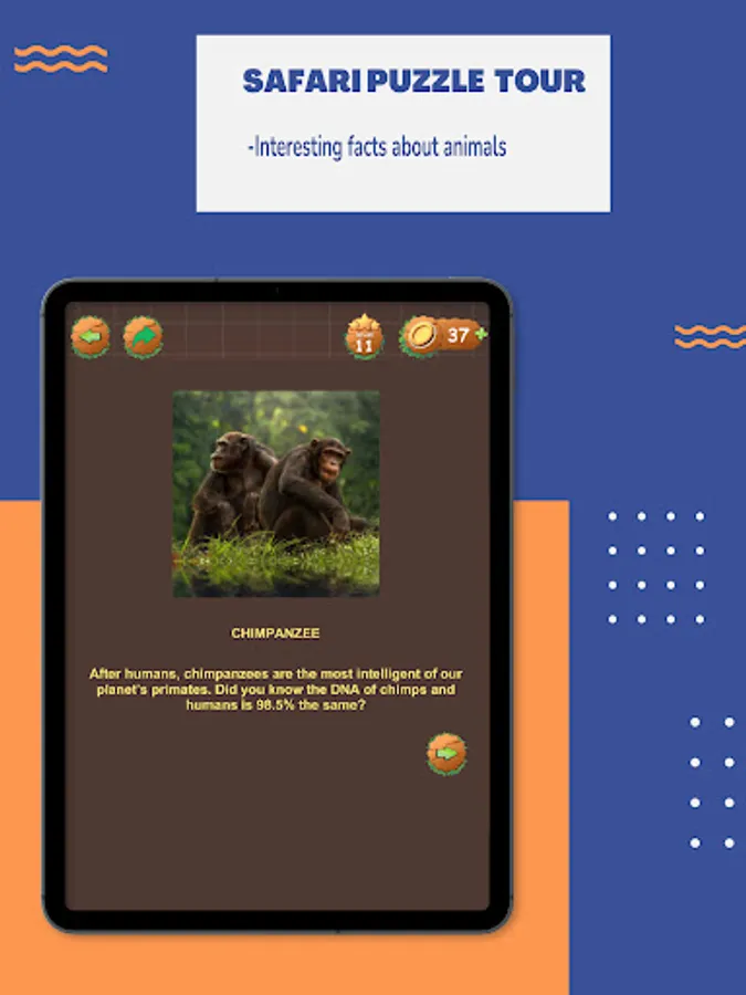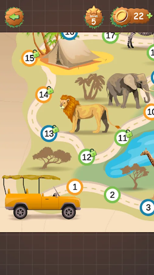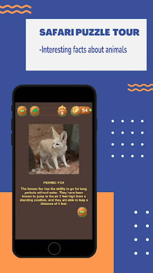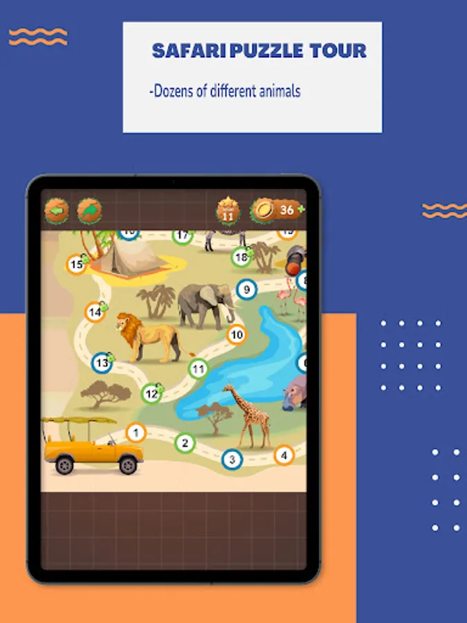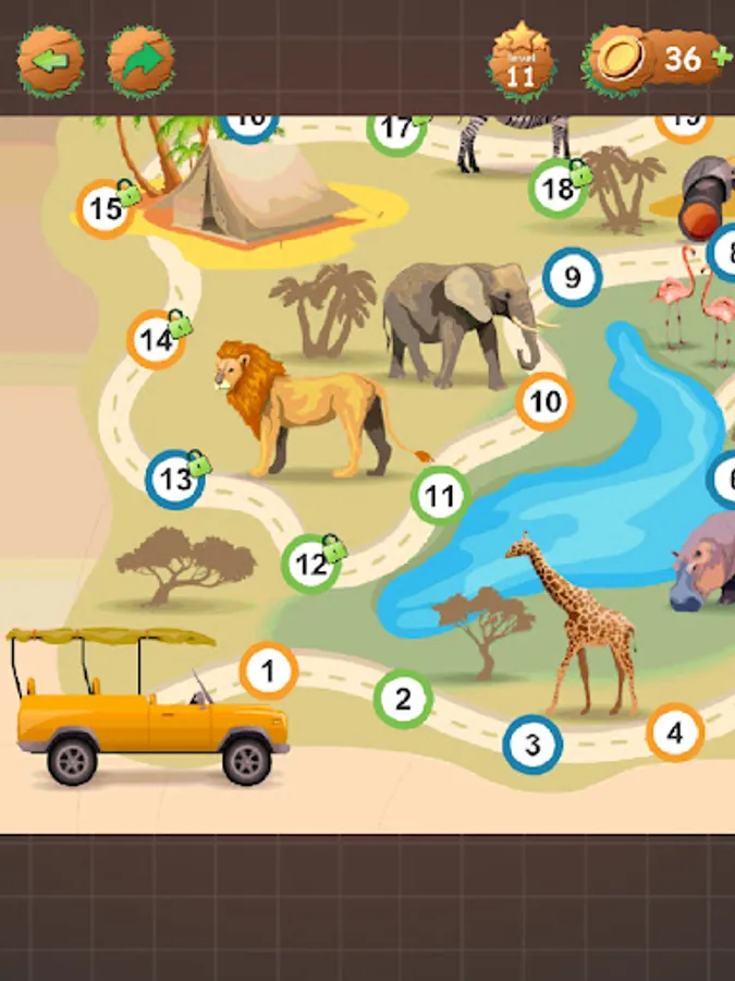 In each level you will get to know a different animal and you will see interesting information about it. In this puzzle you can find giraffe, lion, hyena etc. You will meet many different rare animals.