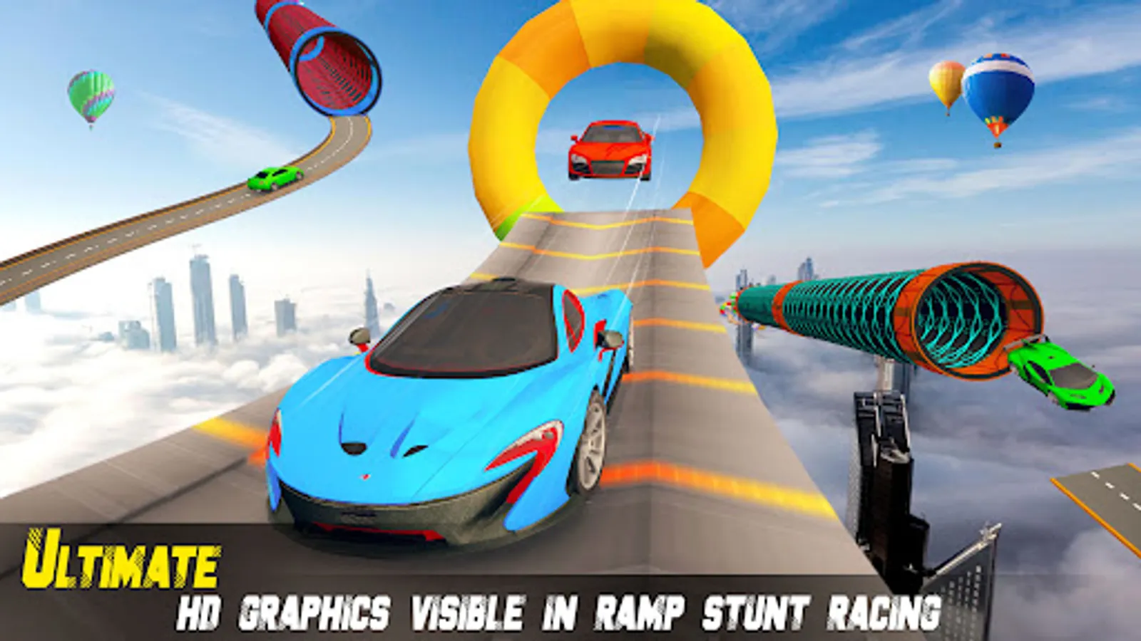 Play Formula Car Stunt Car Games over the high sky Mega Ramps in this new car game 2022.