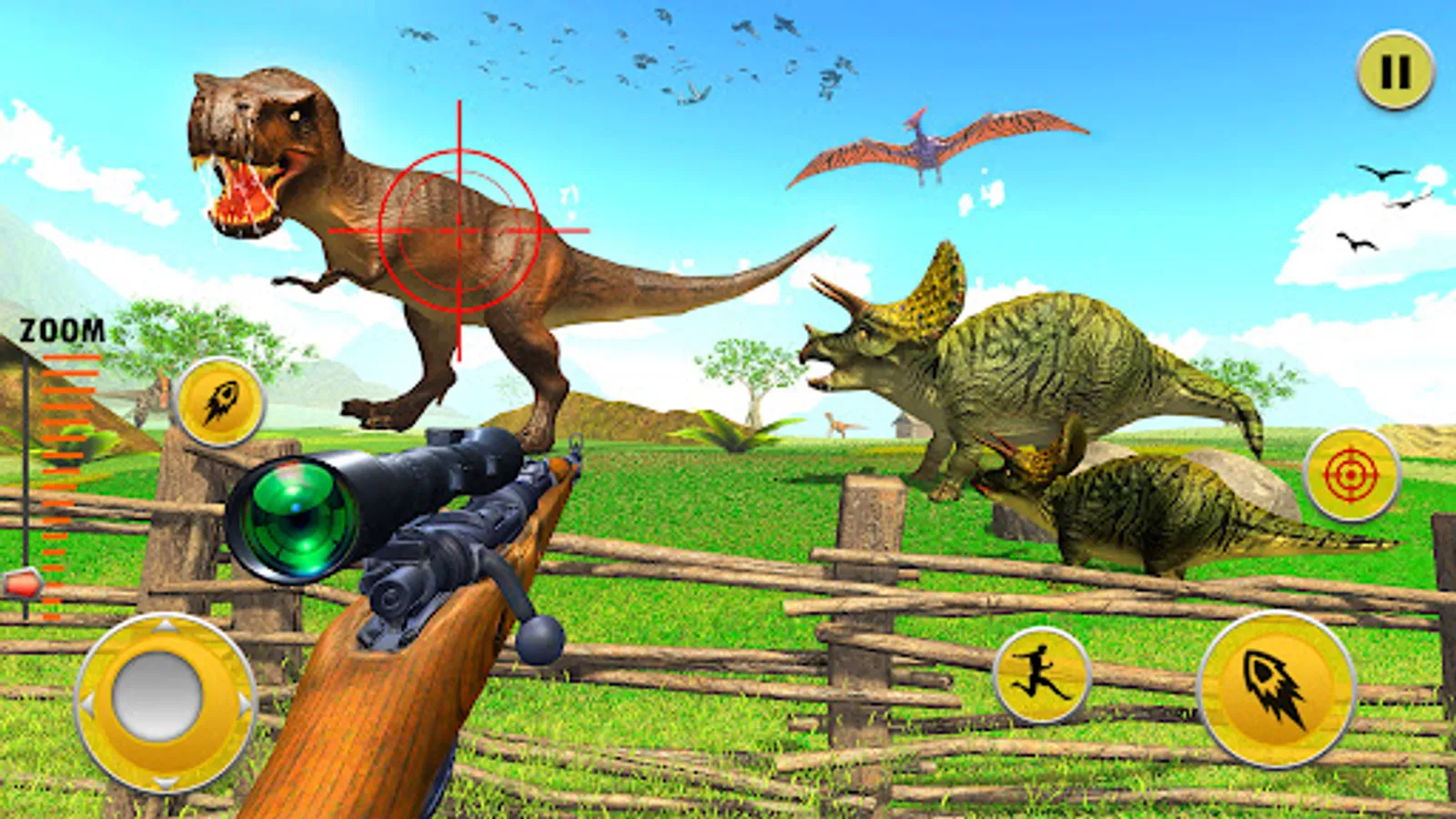 Are you ready for playing Deadly Dinosaur- Hunting Games in Safari Forest? If you ready then it would be the best game for hunting bloodthirsty animals in safari jungle like, Lion, wolf, tiger, wild dog and bloody deadly dinosaur. Dino hunter be the best sniper hunting games, explore this Jurassic jungle in wild beast and hunting down the wild dinosaurs, wild animals has spread out in this Dino sniper shooting action game. Select your guns: start shooting in this black forest means Jurassic forest, hunting the safari animals and also wild dinosaur hunting with more than 20 Bloodthirsty Carnivore and prehistoric bloody species. Bloodthirsty species are also hungry for the prey ready to attack you, if you are not hunting the bloodthirsty animal in a single sniper bullet then they will attack you and harm you so try to hunting deadly animals in a single bullet and keep it.
