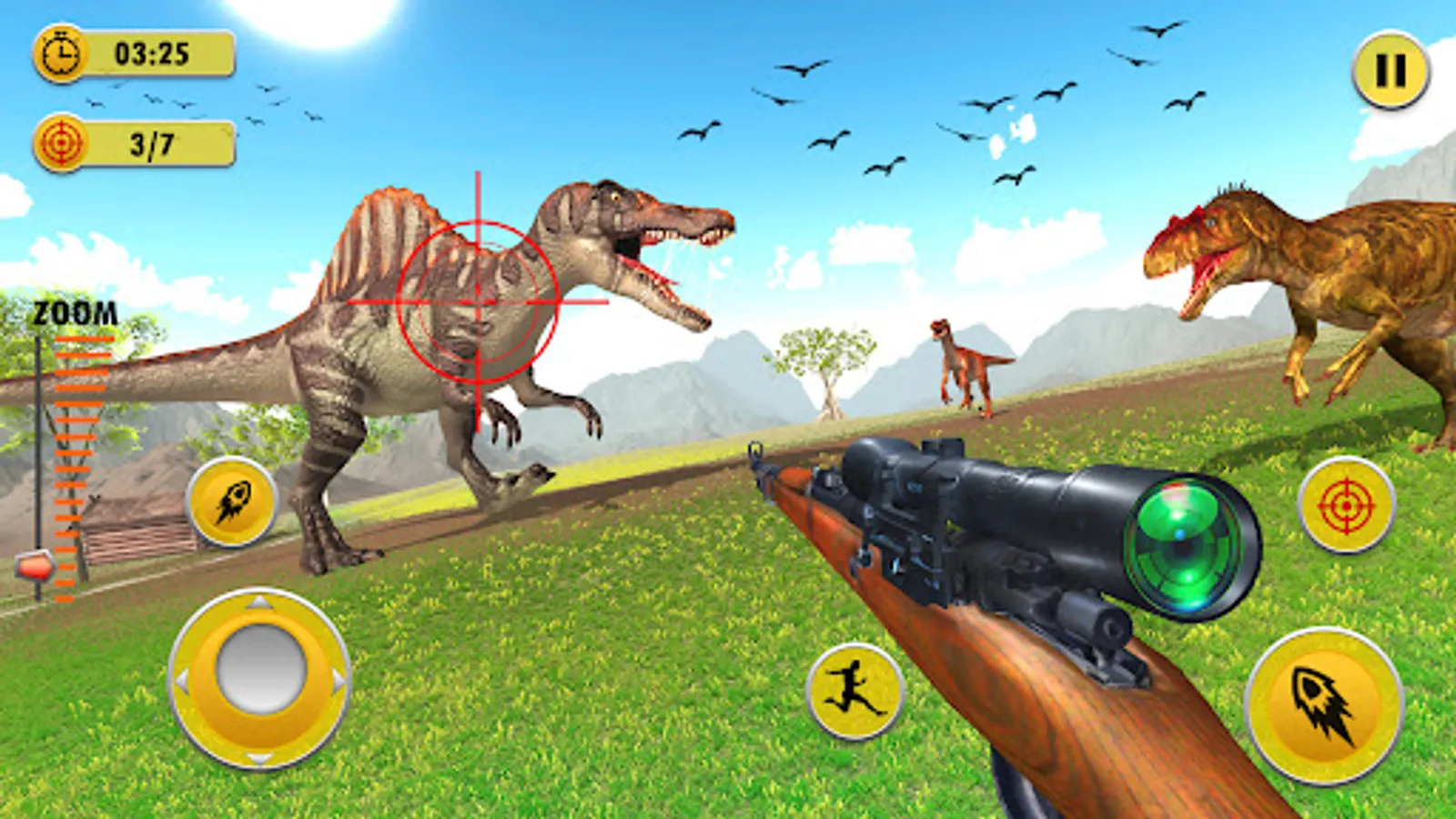 Deadly Dinosaurs Hunting and Large Mammals in multiple Season. Hunting the wild animals are not easy in every season like snow, raining and winter season. Enjoy safari dinosaur hunter, animal hunter as durable and tedious deadly dinosaur hunting challenges the hunting clash games and deer hunting games. Dino Hunting Challenge on your mobile screen. Stop animal attacks as dinosaur hunter in sports. Fill your hunting bag with all the deadly Shores Hunting skins you want by organizing a well-organized sniper shooting on the deadly shores in Wild Dinosaur Hunting to prevent animals from attacking predators in your safari animal hunting adventure. Try your best, prey the deer and other animals like, bear, bobcats, moose and many more animals.