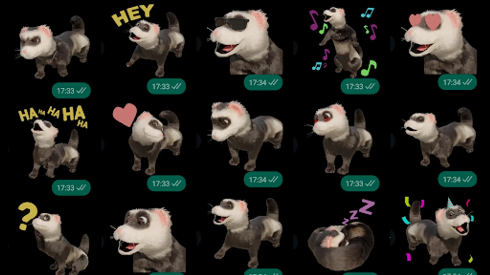 Share now with your friends and family on WhatsApp 16 lovely Ferret stickers and give an adorable touch to all your conversations 🐾