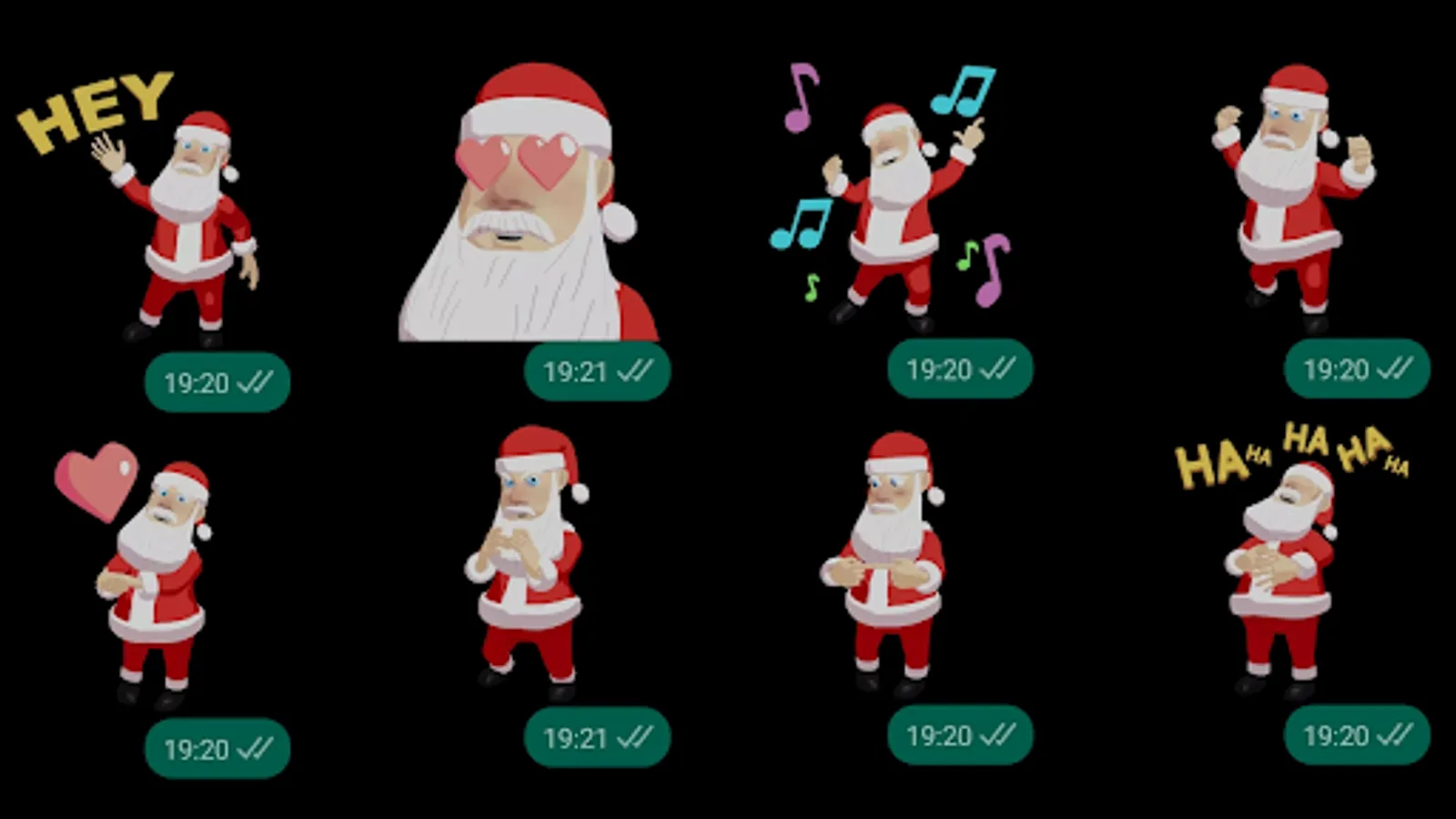 Share now with your friends and family on WhatsApp 16 cool Santa stickers 🎅🎁