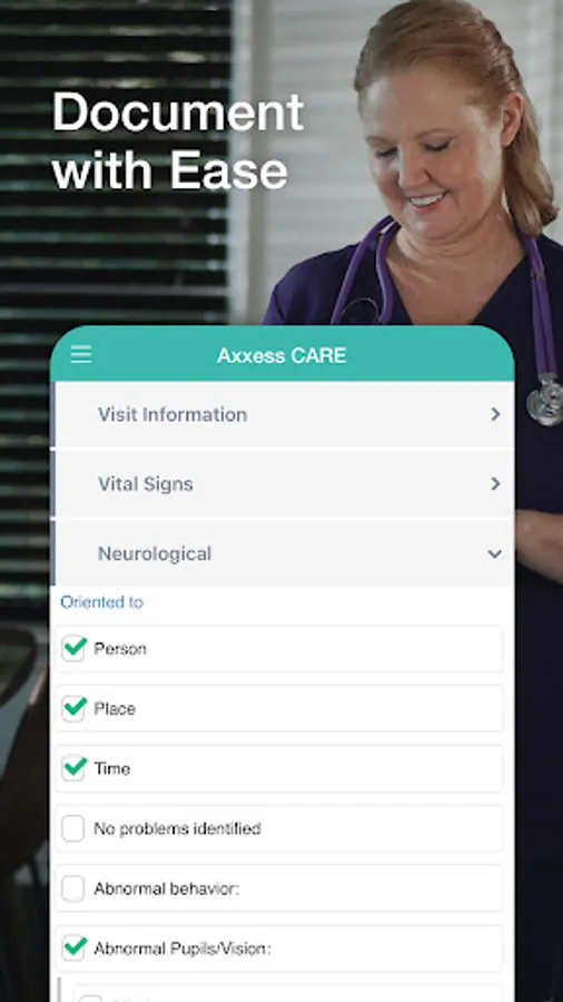 Verify visits at the point of care, capture patient signatures and complete visit notes in the Axxess CARE app.