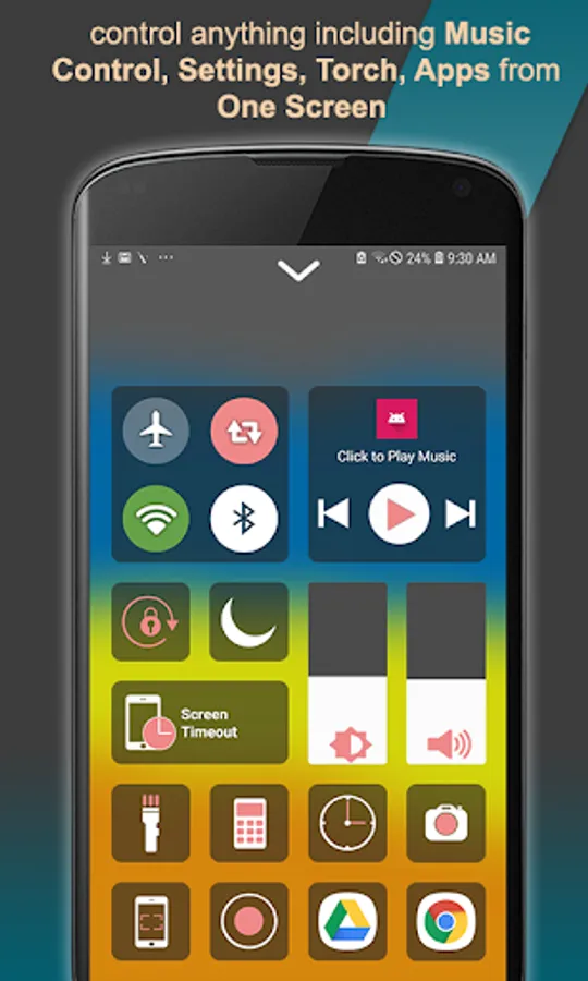 if you want a single screen to control most of your phone features, then control center is a perfect match for you. control center gives you the feel of iphone on android. it gives the convenience of assistive touch like iphone.