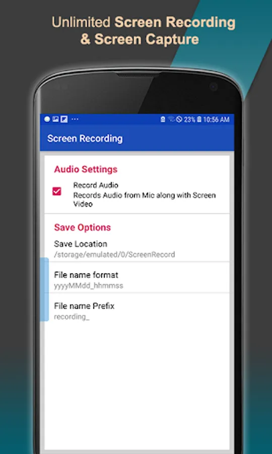 - screen recorder : Record your phone screen for unlimited time by screencast