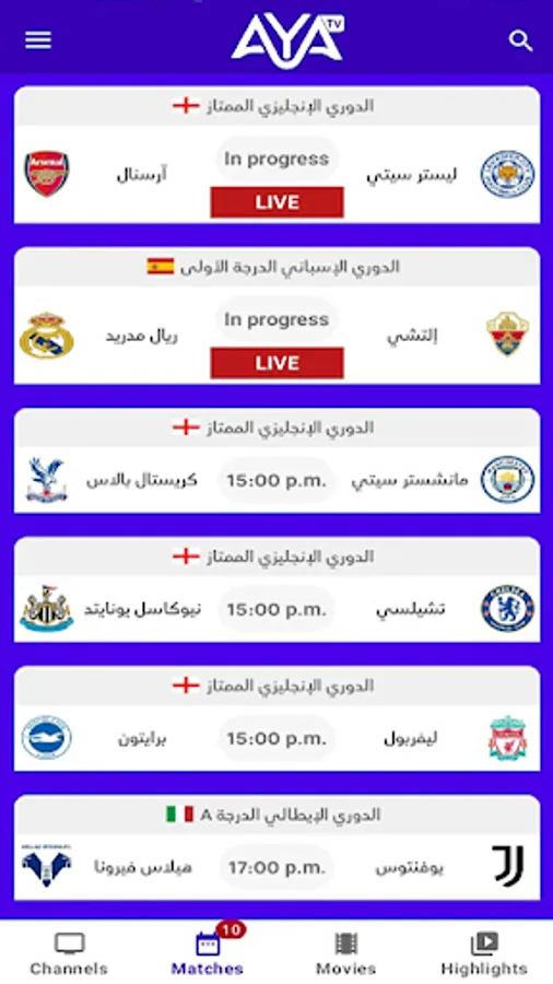 Player Tv Aya لوقت الحالي من تطبيق tv yacine