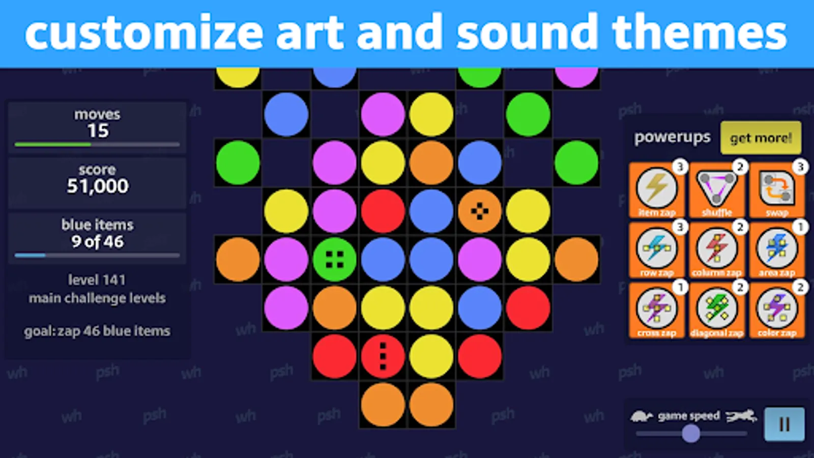 -- Choose from different art and audio themes to customize how the game looks and sounds.