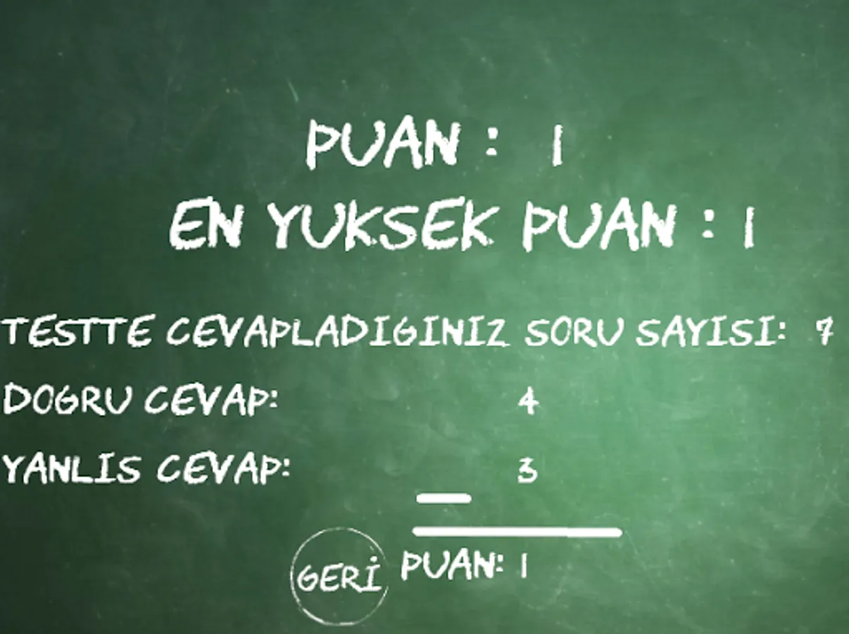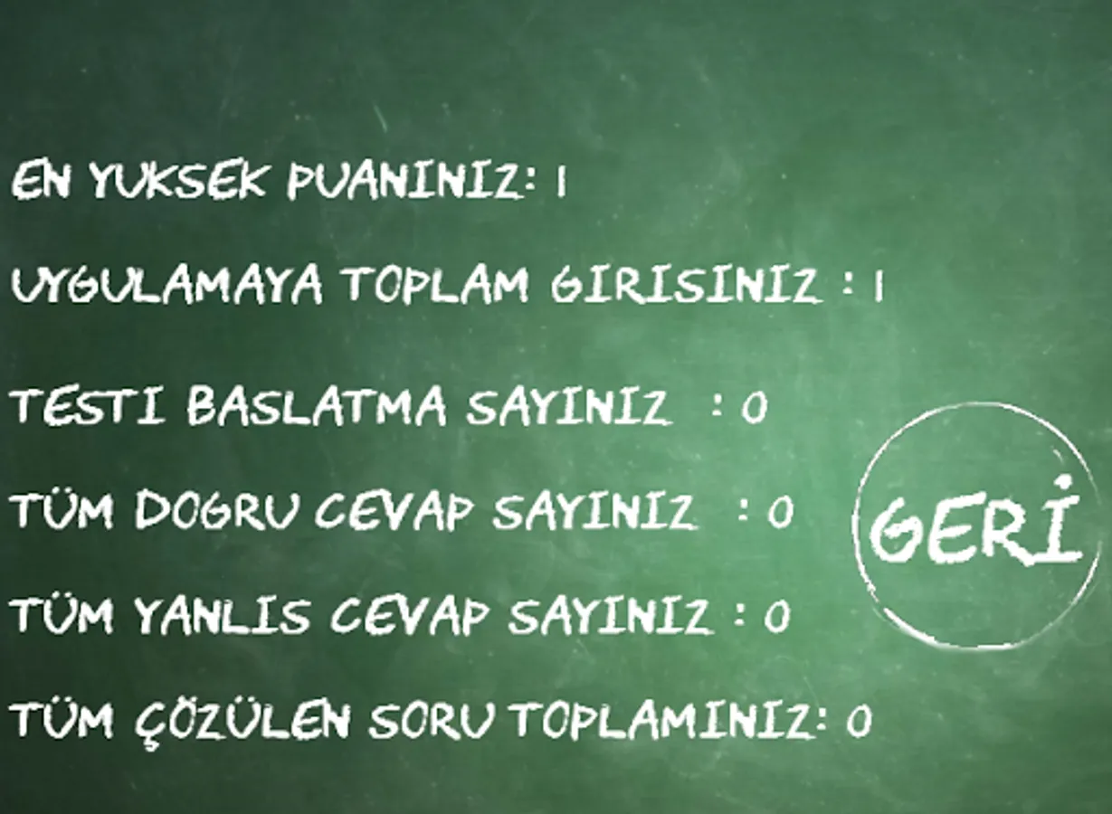 + You can always see statistics such as your highest score, total entry into the application, how many times you have taken the test, all your correct answers, all your wrong answers.