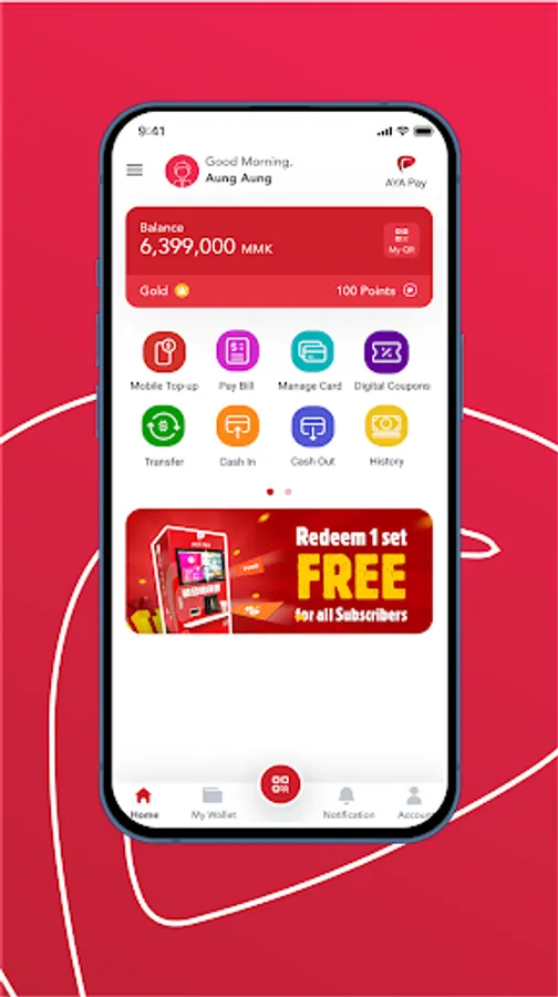 - Top-Up & Cash-Out: Recharge your AYA Pay using your debit/credit card or bank transfer and withdraw funds straight to your bank account.
