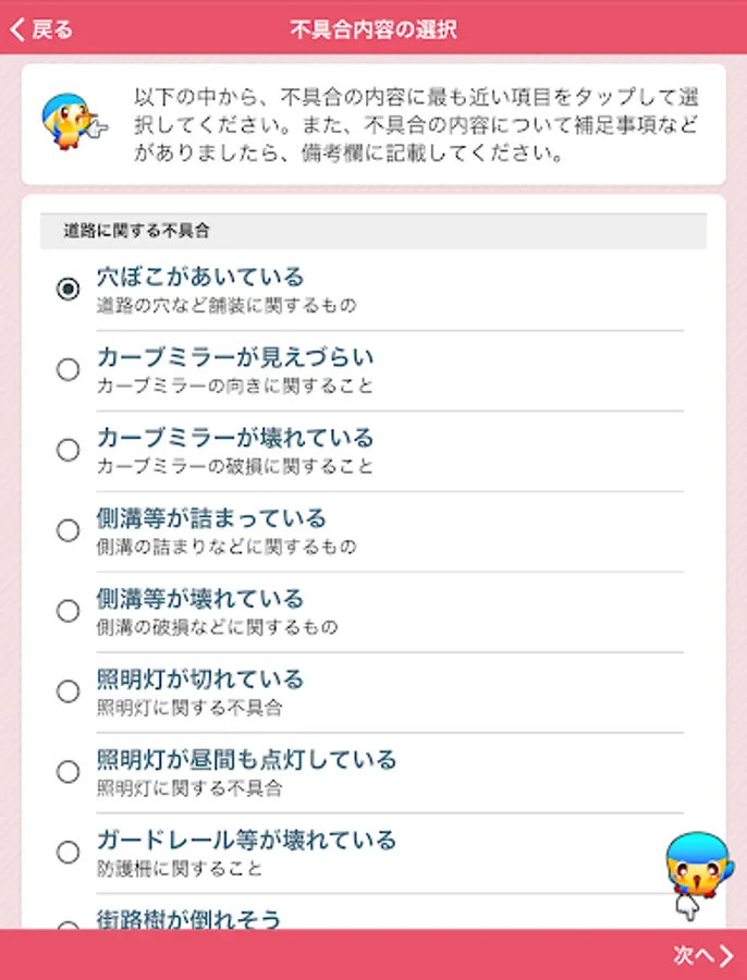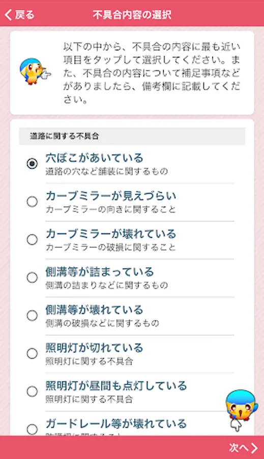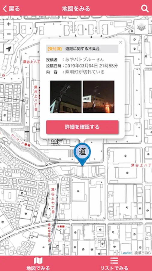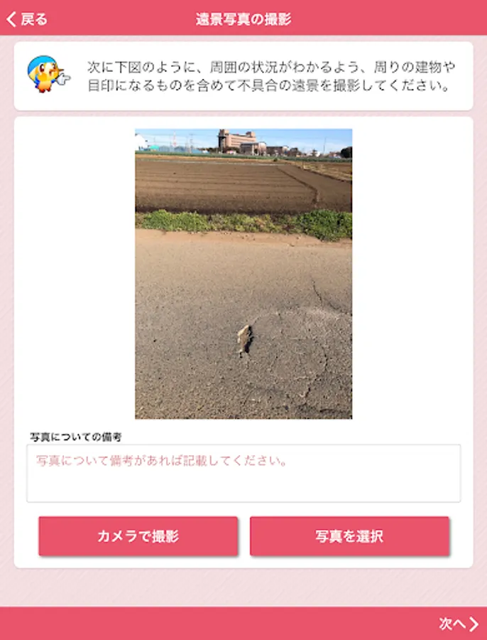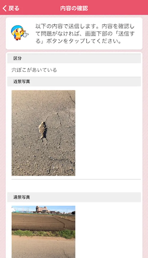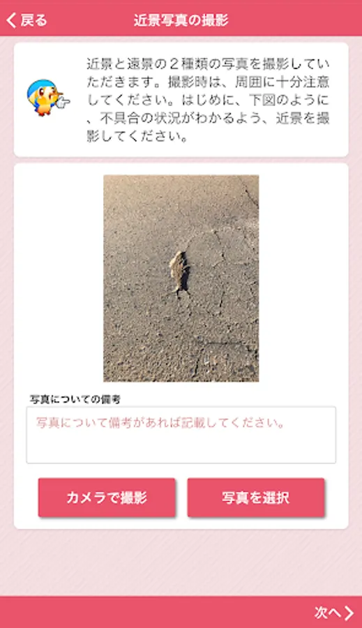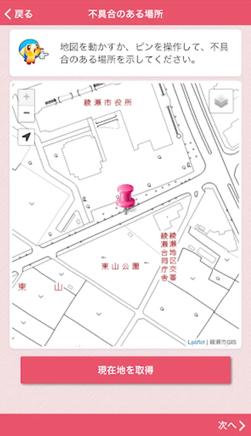 It is an application that can report the broken part etc. of the road managed by Aya City, both photos and position information. In order to report, it is necessary to perform user registration when using this application for the first time.