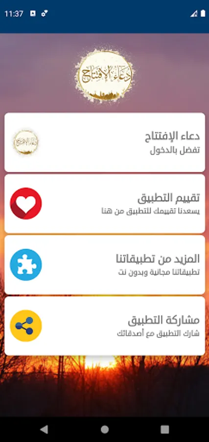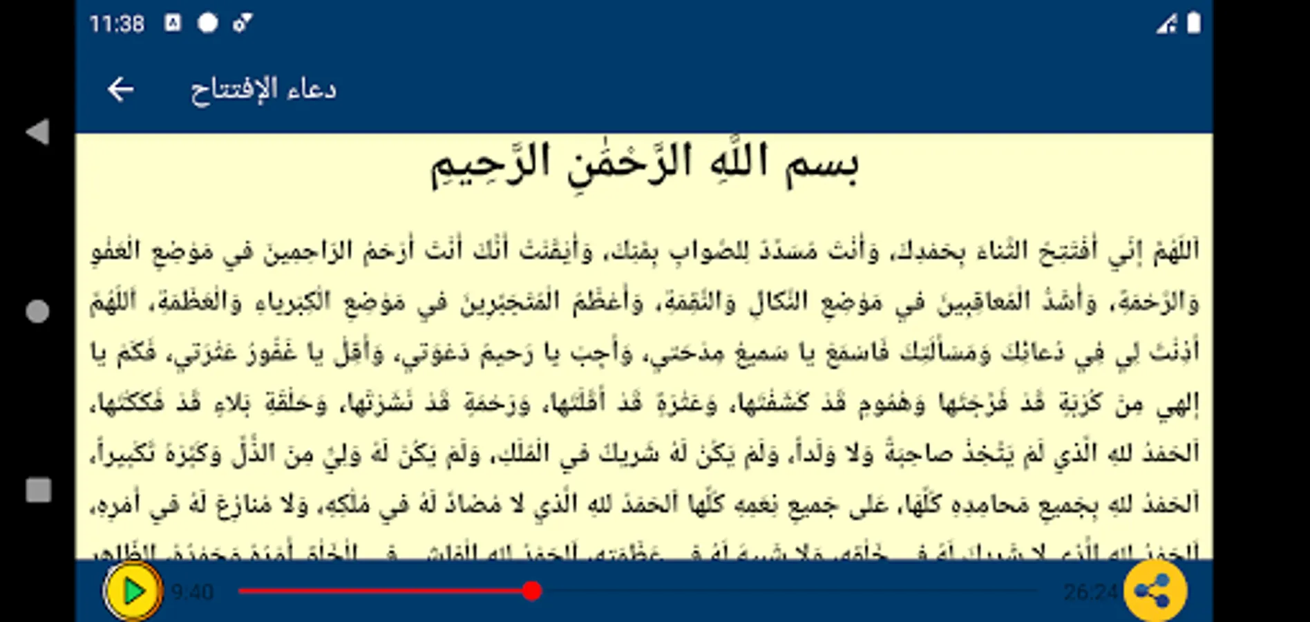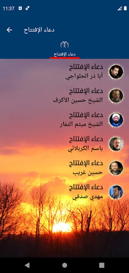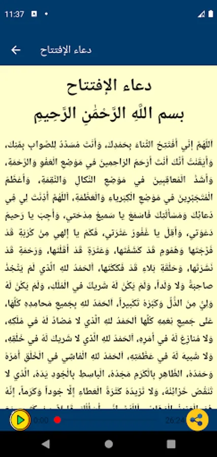 The application includes the opening supplication written and heard with the most beautiful voices of famous reciters: