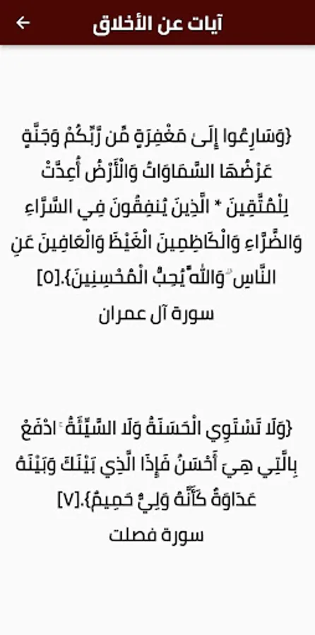 Short and expressive verses from the Qur’an. It presents you with short verses about tolerance, forgiveness, morals, and honoring one’s parents.