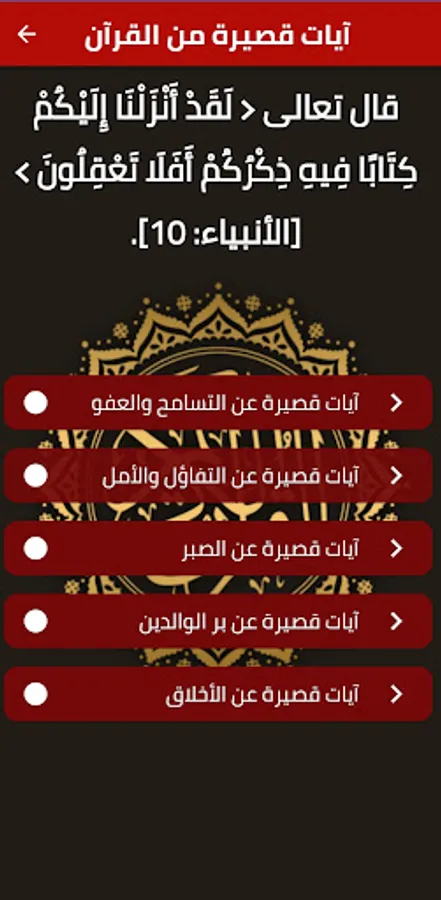 The application of short and expressive verses from the Qur’an presents you with short verses about patience, optimism and hope.