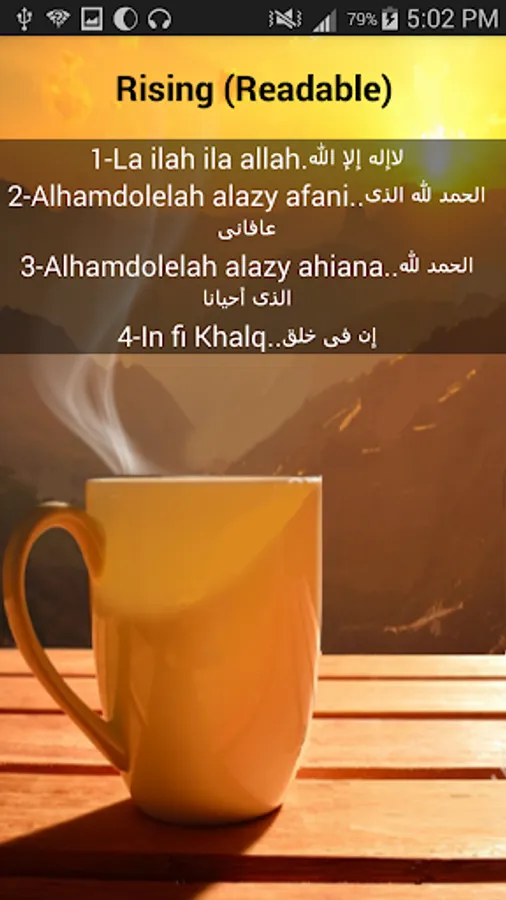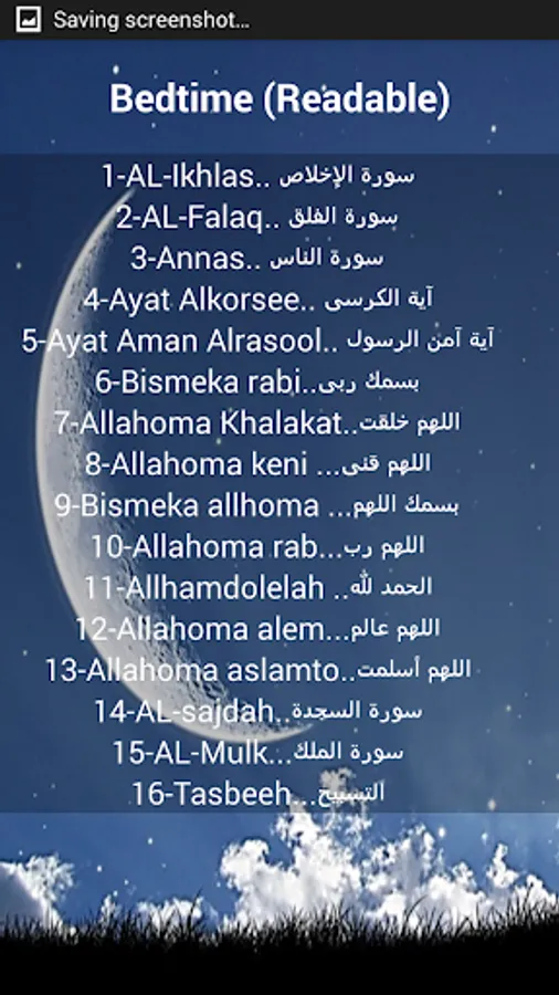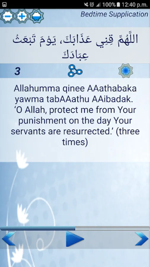- Possibility to listen to all bedtime supplications in sequence and after you wake up you will find the app. interface is changed to wake up supplications.