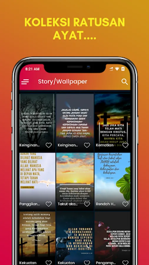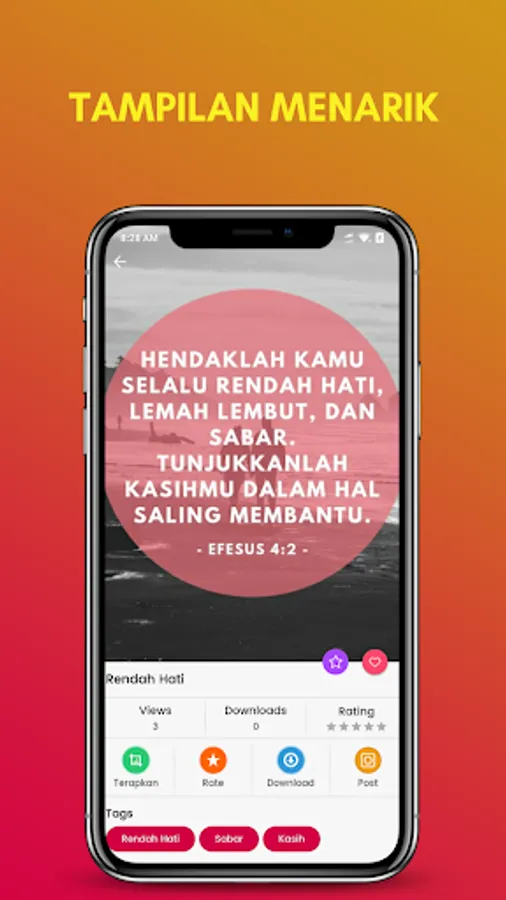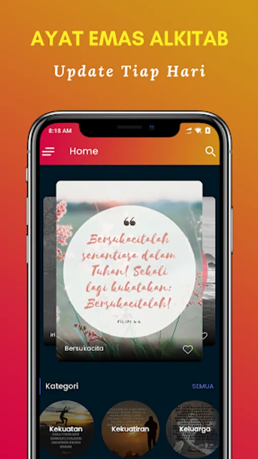 Ayat Emas Alkitab Wallpaper is an application for android devices that contains various collections of daily bible gold verses in the best HD pictorial form that are updated every day so you can use them as wallpaper or to be posted on your story or social media status such as Instagram, Facebook, Whatsapp or other social media.