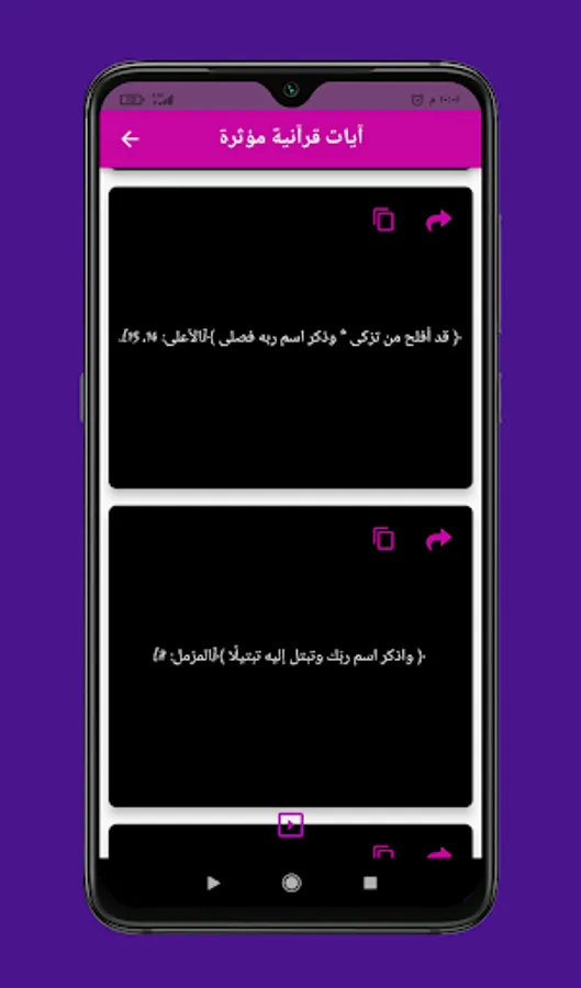 Beautiful and attractive interface Easy to copy and share Quranic verses through social networking sites