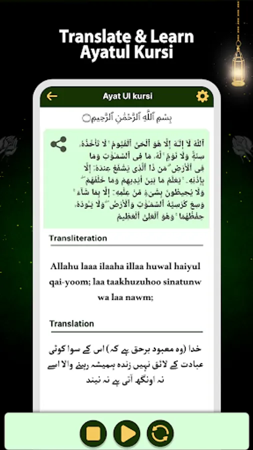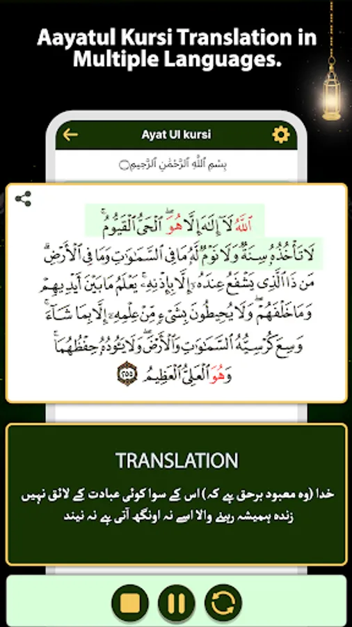 ★Ayatul Kursi with Urdu Translation: Get Urdu translation of ayatul kursi full surah on respected Islamic dua app.