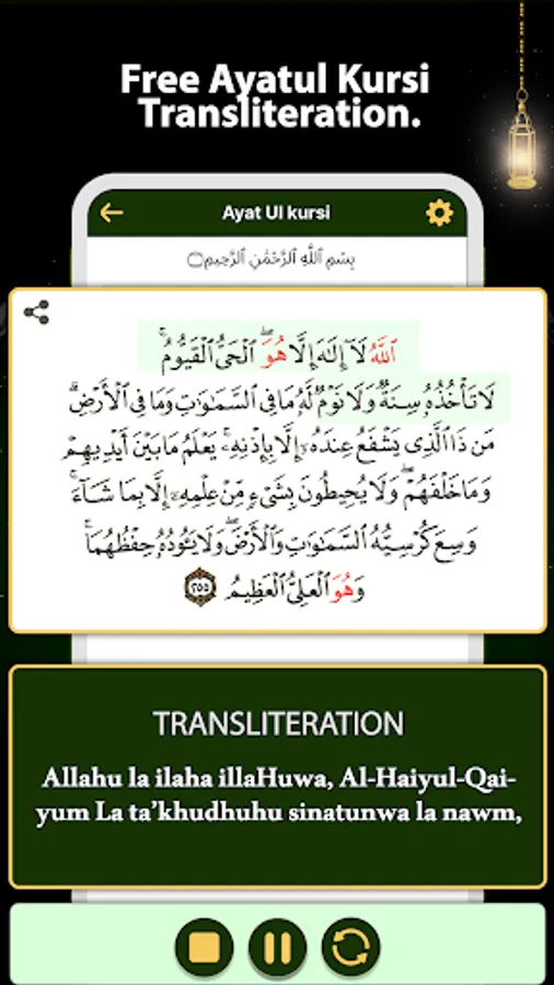 ★Aytul Kursi Transliteration: Read and learn ayat al kursi in English transliteration of Arabic ayatul kursi dua on Islamic dua app.