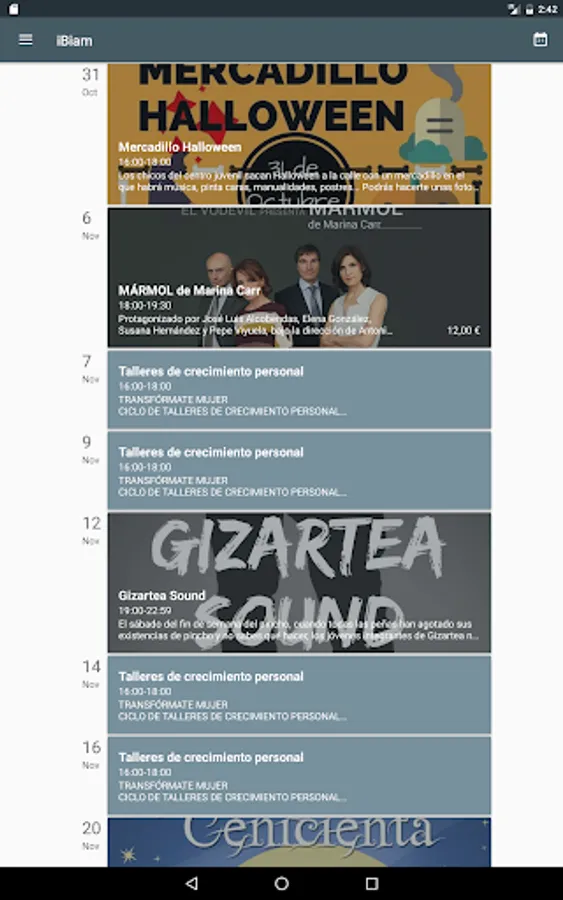 In this application you can find the events for next days quickly, with detailed descriptions, schedules, prices and location.