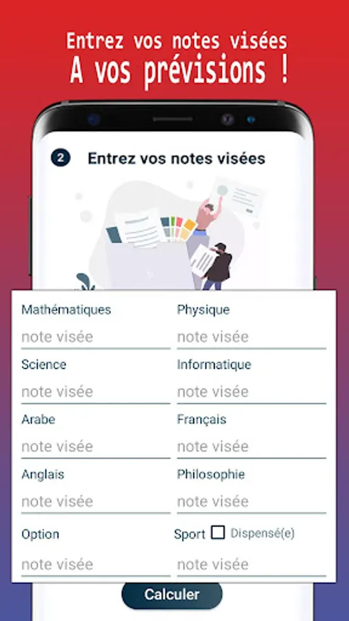 To calculate your average or score just choose your section then type in your target scores and the application uses the new 2020 formulas required approved by the Tunisian Ministry of Education 🇹🇳