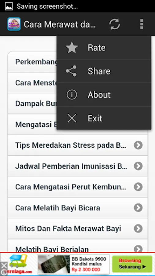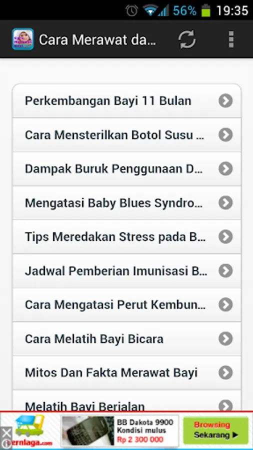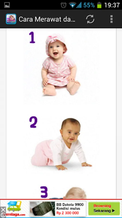 This application is a second application (version 1.3) after an improvement on the previous application (Version 1.0) by not reducing the important information contained in the application. Applications How to Treat Baby Sitting properly and is intended to help mothers who need information about the ways good and right and what things should be considered in the care of heart sibuah. This application is easy to use and included pictures supporting more interesting when reading the contents of the application. Compiled and drawn from a variety of reliable sources in the medical world that is intended to provide important information during care in caring for the baby.