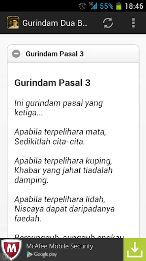 Applications that present original art in the form of couplets Malays National Twelve works of the poet Malay Raja Ali Haji. Now you can have on your favorite smartphone wherever and whenever you want. With the values contained in each verse couplets, it is very appropriate to be applied in everyday life that bersumberkan of Islamic law.