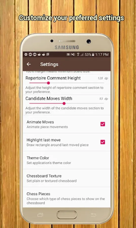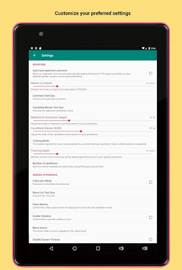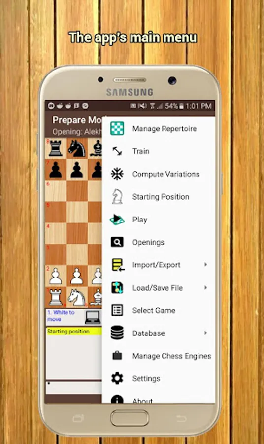 This app can also be used to just enjoy playing chess against the chess engine with 100 levels of playing strength to match your own strength or play with your friend on the same device. You can even set your own opening repertoire as opening book when playing with the engine.
