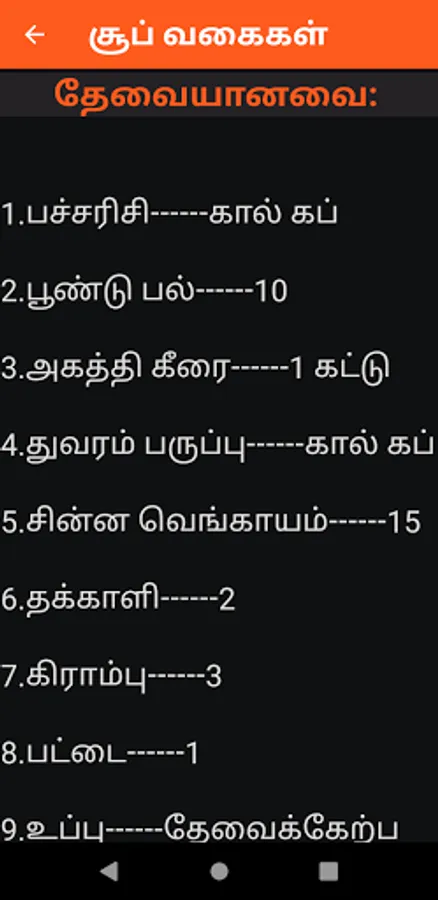 This App comes with a unique collection of 130 plus both Vegetarian and Non-Vegetarian Soup's Variety recipes and a complete guide on how to cook different types of Soup Vagaigal Samayal Recipes.