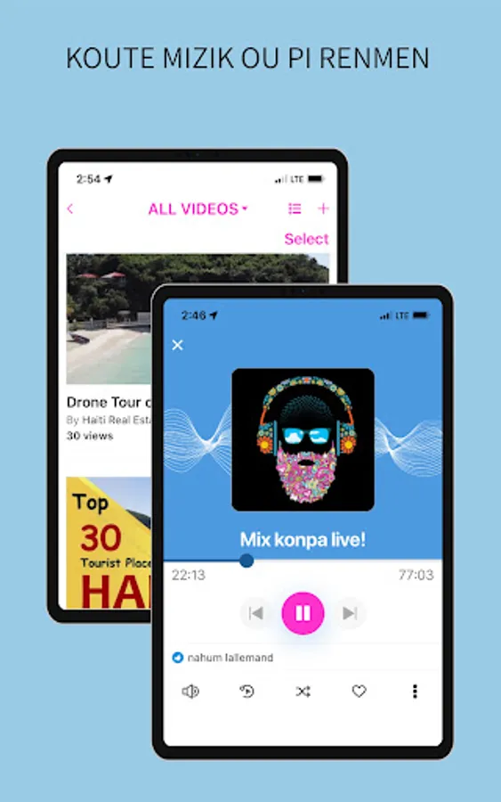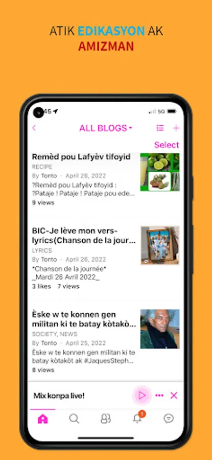 With Ayiti Konekte, you have the opportunity to socialize, listen to our sponsored live (Haitian) radio shows, download free MP3 music files, Share your talents (music, videos, movies, etc.) with your friends and the world. On this app, you can also list items for sale on our marketplace, search for homes to buy or rent. We truly are about connecting you with the rest of the world.