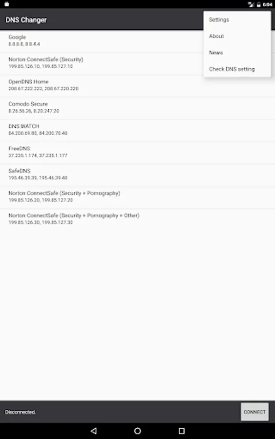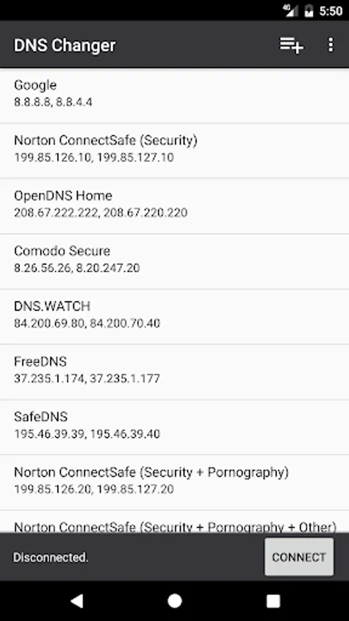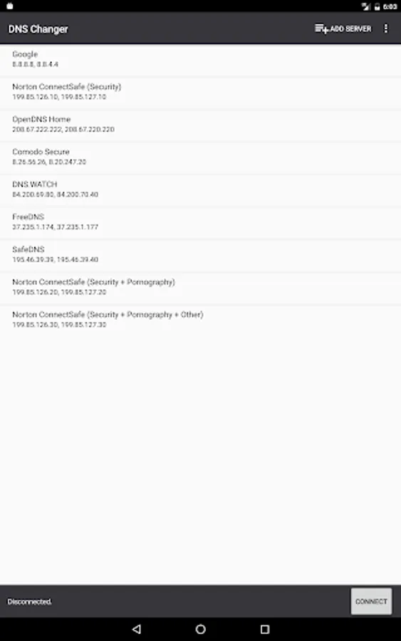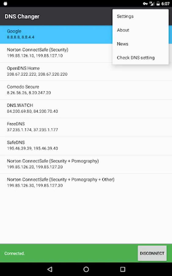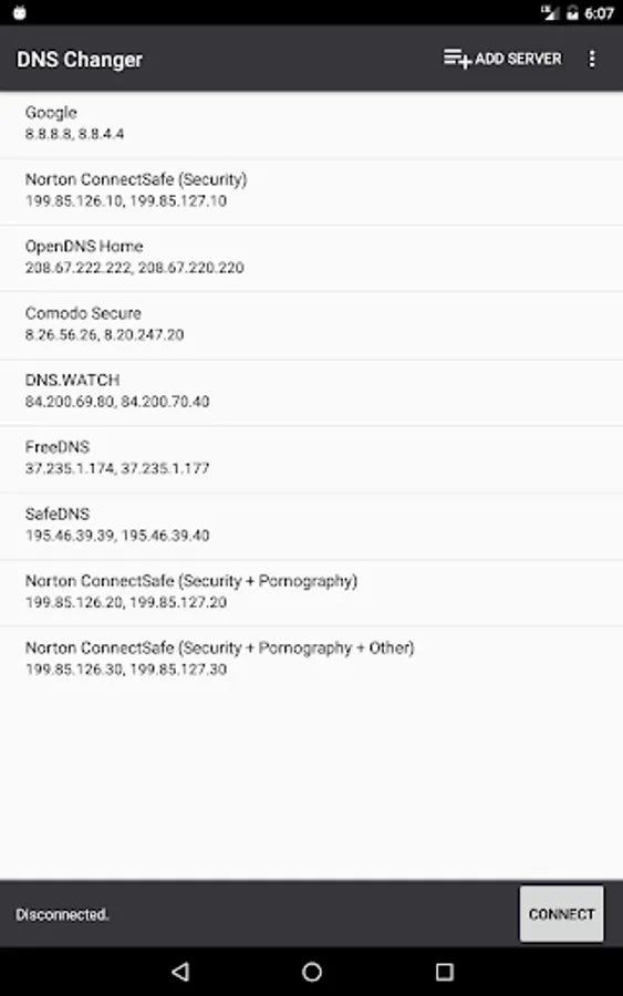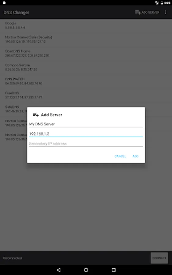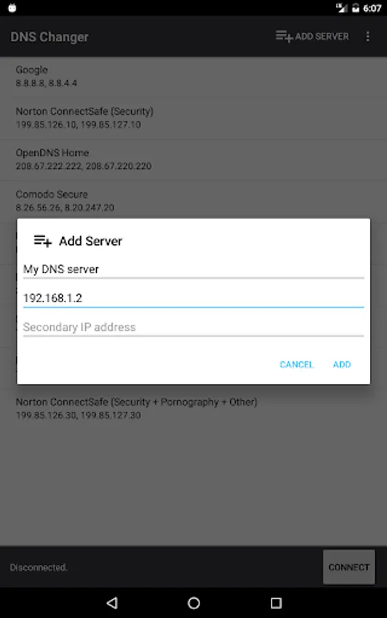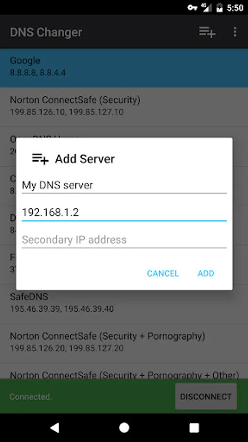 - Set a custom DNS server or select one from the list