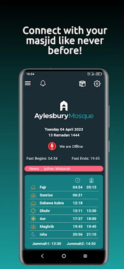 • Keep up to date and view real-time news from the Mosque on the home screen.