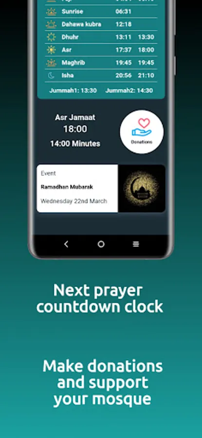 • Receive messages for important Events, Ramadan, Eid, Janazah etc. direct from the Mosque.