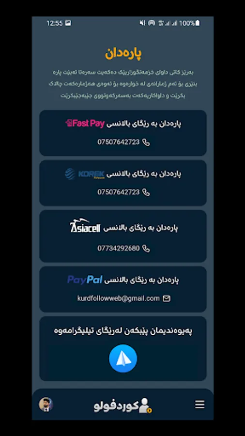 کورد فۆلۆ یەکەیمین بەرنامەیە لە کوردستان بۆ کاری سۆشیال میدیا و خزمەتگۆزاریەکانی ئونلاین بۆ زیادکردنی خزمەتگۆزاریەکان وەک فولو و لایک و سەبسکرایب و ڤیو بەشێوازێکی گشتی لە هەموو ناوچەکەدا.