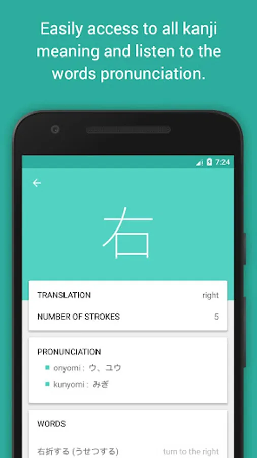 - Meaningful informations such as translations, pronunciations ( in both romaji and kana ), the number of strokes, a list of words with sounds and even the video which draws the kanji step by step.