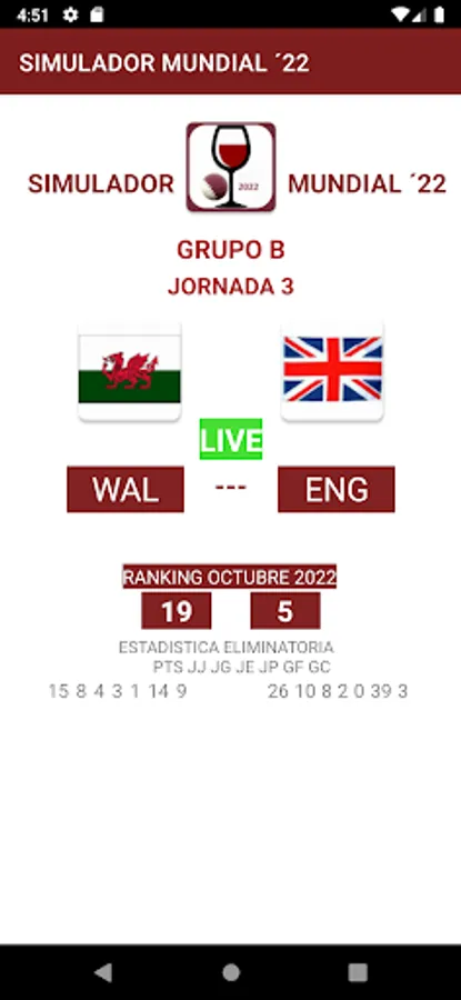 The results of the simulation are based on previous games of each team, as well as a previous initial evaluation that you will give to each team.