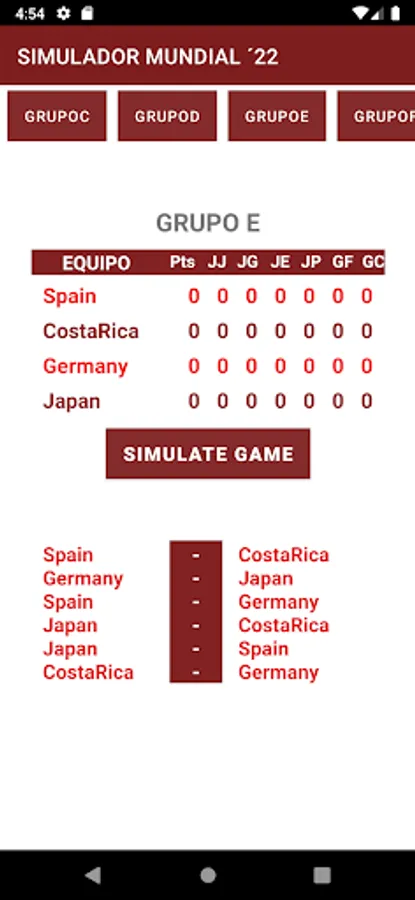 Simulate the world cup games of all groups. Also see the results of the simulated games and their statistics table.