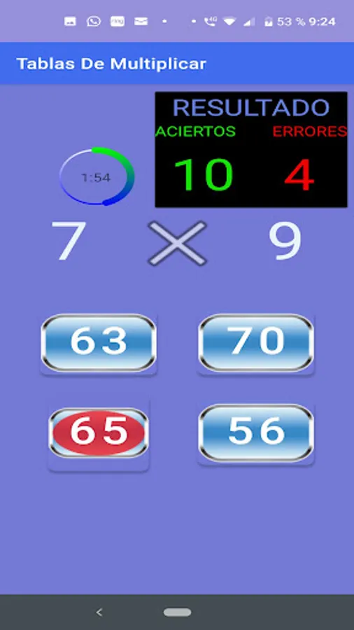 Learn while having fun interacting with this app. All basic level tables in ascending, descending or random order. Choose the result between 4 options and if you are already advancing, place the result directly. Improve every time your result is displayed on a digital board.