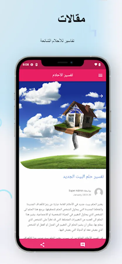 The "Smart Dream Interpretation" application is a free application available on the Google Play Store, and it aims to provide an interpretation of dreams in Arabic using modern technology and artificial intelligence. A unique application that uses modern technologies in the field of artificial intelligence to interpret dreams in an accurate and reliable way. The application offers free interpretations of dreams.