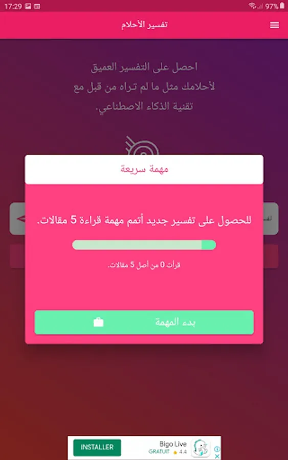The application also provides the service of instant interpretation of dreams, where the dream is analyzed at the present time using modern technology, and the interpretation of the dream is displayed instantly. The app also contains a list of common dreams and their interpretations to help users understand the hidden messages within dreams.