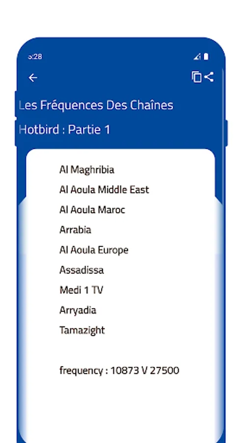 The latest Hot Bird satellite channel frequencies. It includes news, sports, and cultural communication channels, as well as TV series, competitions, breaking news, and movie channels on the European Hotbird satellite. Hotbird channels update with the new change in frequencies and open and encrypted packages. The application helps you easily find the frequency of channels on the Moon Hot Bird, where each type of channels, movies, series, sports, education, cooking, driving, swimming and other channels are arranged and organized within the application. Also watch the Moroccan, Algerian, Egyptian and Arab channels.