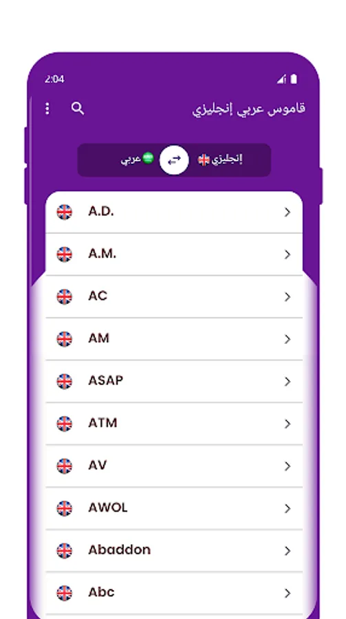 Dictionary Arabic translation - Free English, Dictionary provides a comprehensive learning English, includes: Translate words and phrases, Arabic dictionary application that allows you to translate words from Arabic into English and vice versa without having to connect to the Internet and free of charge.