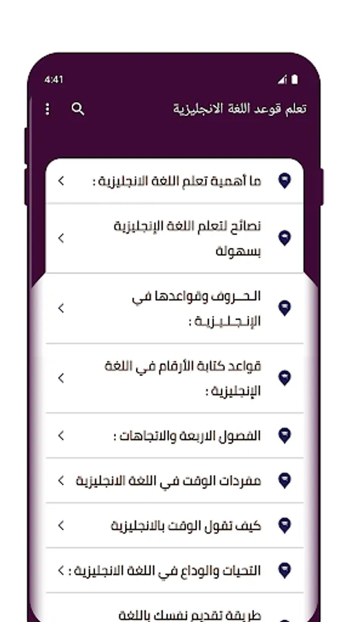 The application of the book Learn English Grammar is a comprehensive book that contains several lessons and exercises such as (support lessons without the Internet and daily English language lessons and exercise books to understand the basic rules). To pronunciation of letters and books explaining the rules and education of Grammer.