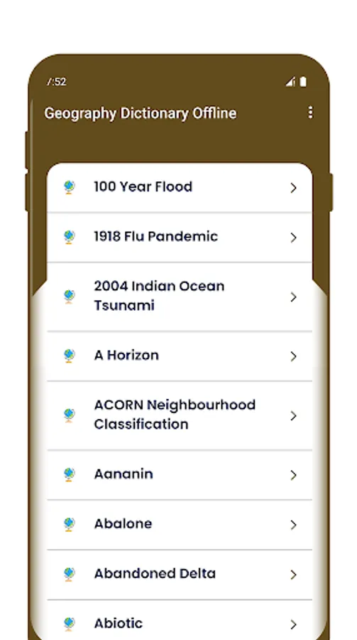 Geography Dictionary App provides you more than 5000 Geographical Terms and their respective definitions and meanings with lots of quizzes and puzzles. geography is easy as you can find the Country Facts and Outlook like capital, region, continent, official language, coastline, land, water, irrigated land, dialling code, airports, seas, currency, description, fact, facet, map, flag etc. with this geography Dictionary.