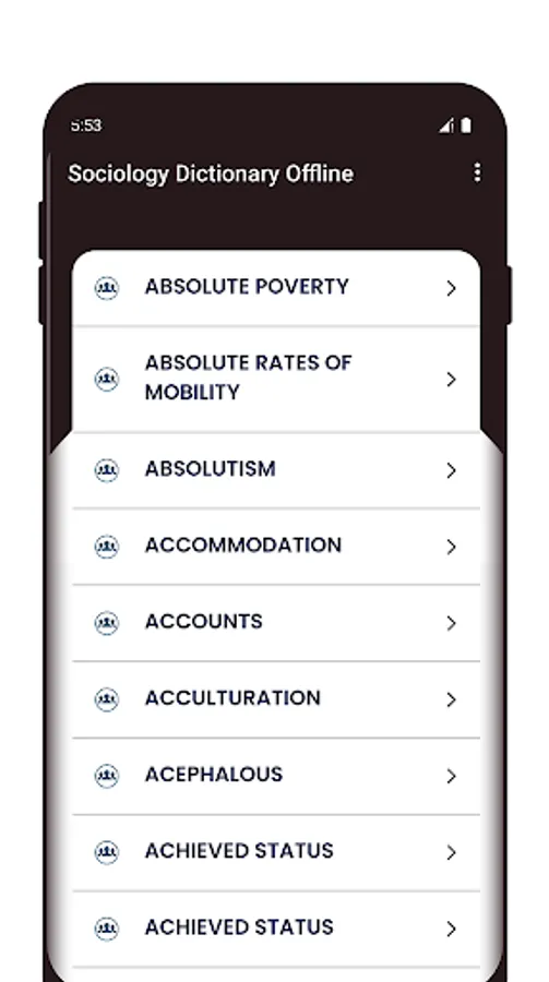 Sociology Dictionary contains 1,700 of the most frequent but however most difficult to find terms, expressions and idioms used by sociologists with clearly understandable definitions, everywhere off-line, without internet connection.