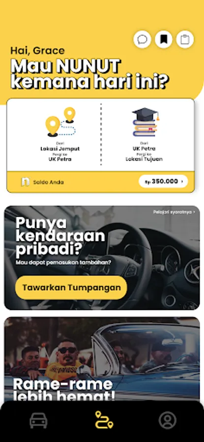 Nunut is a ridesharing application created to be used by the UK Petra Surabaya community. This application will help the UK Petra community who want to share an empty slot in their car which can help become joint transportation for the large Petranesian family!