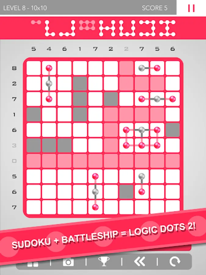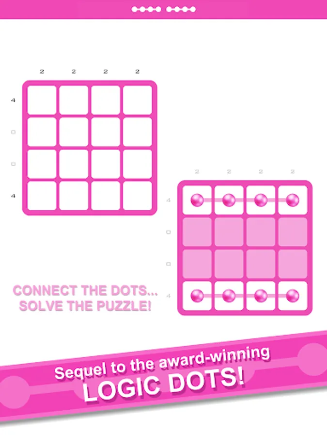 If you like solving ingenious puzzles, you need Logic Dots 2! It's so easy and addictive to play: place dots on the grid to make shapes and solve each puzzle. This uniquely fantastic combination of Sudoku and Battleship is simple and logical but increasingly challenging - Logic Dots 2 amazes and delights in equal measure.