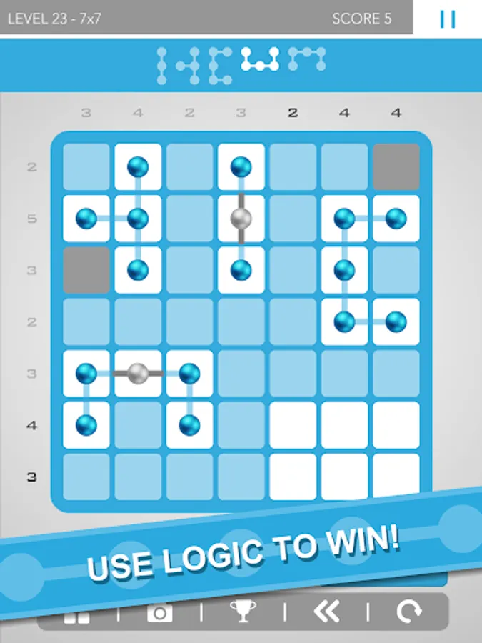 - USE LOGIC TO WIN: Place dots in the grid to create dot lines and shapes to solve each logic puzzle.