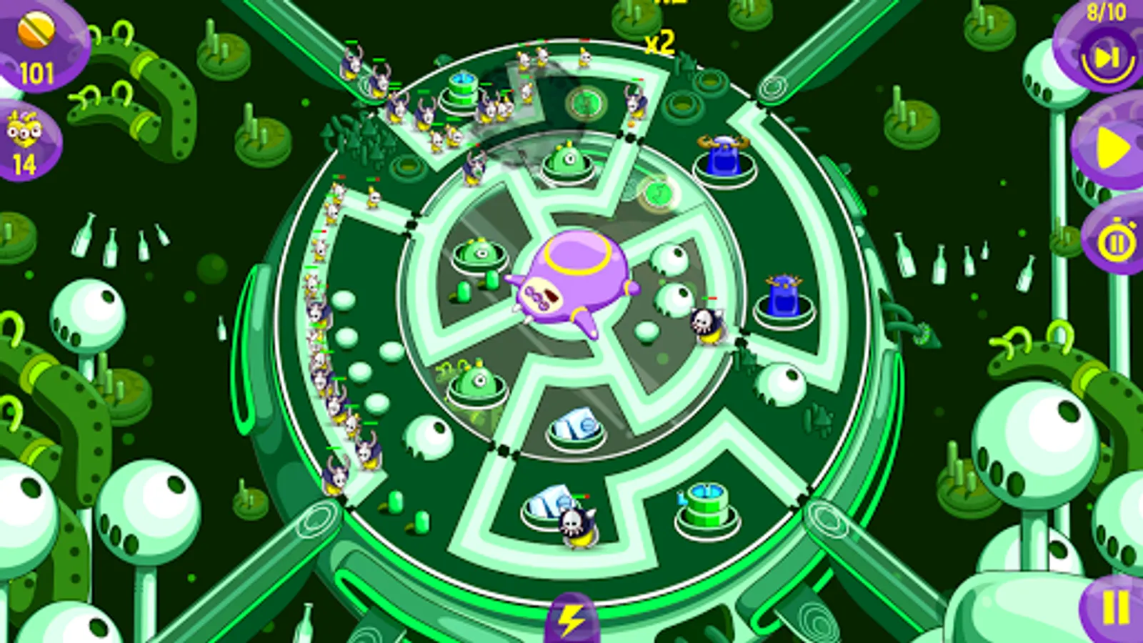 Combine tactical planning with strategic tower upgrades to slow, divert and damage your enemies. Carefully choose the placement and upgrade levels of your towers, as each turret possesses unique strengths and weaknesses. Simply swipe to change the routes your enemies take, allowing each tower to cause maximum carnage!