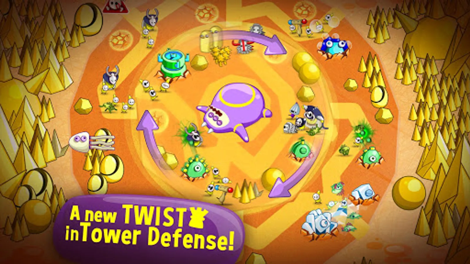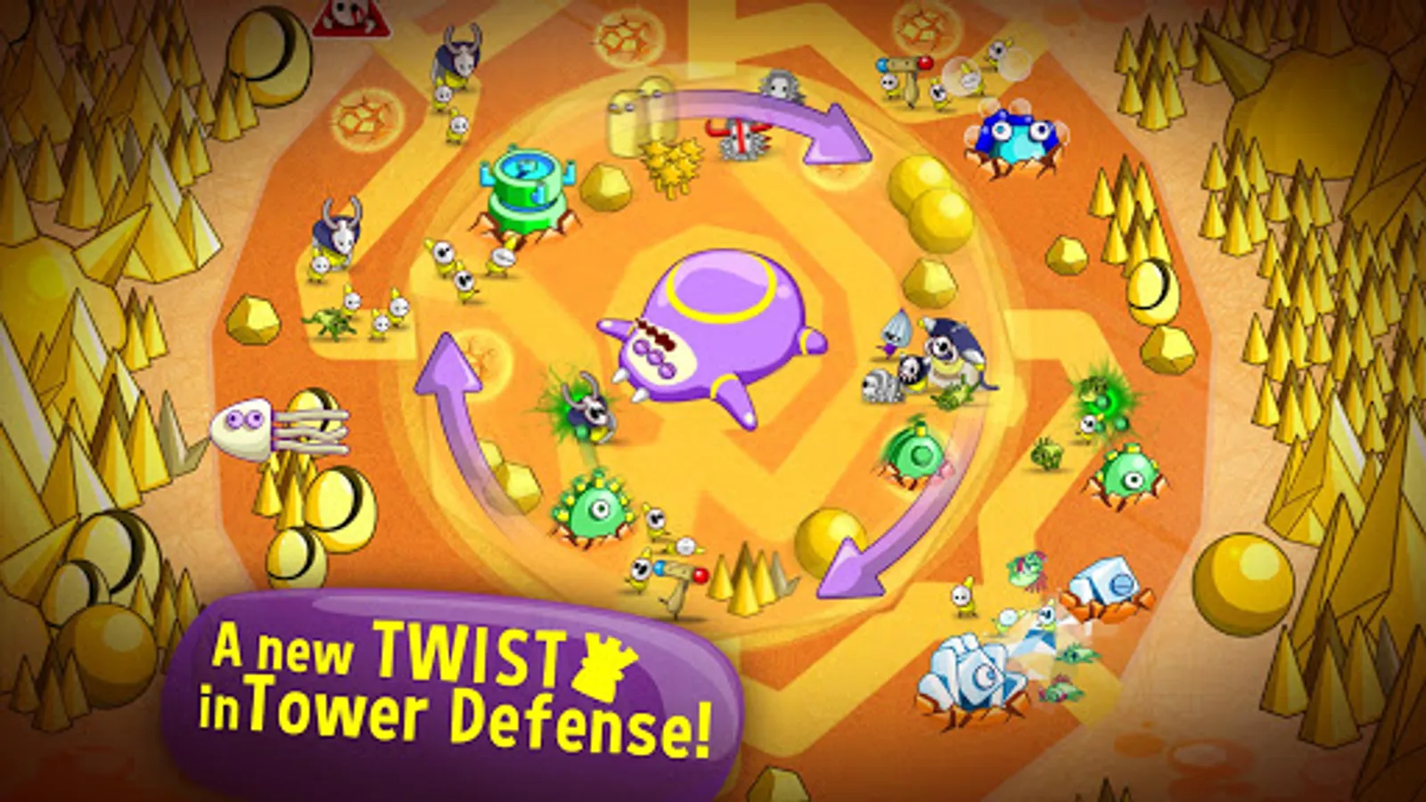 - Control the terrain with strategic swipes of your finger - twist and turn your enemies so your towers can destroy them!